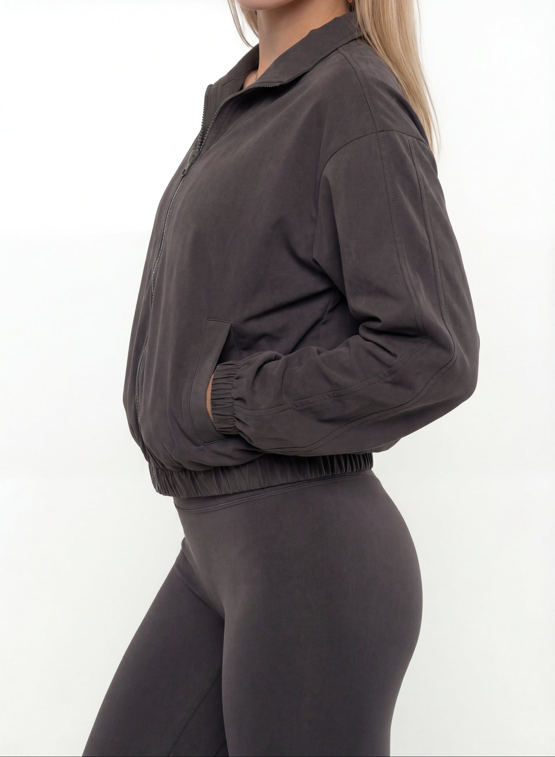 Chaqueta deportiva femenina de corte relajado y estilo urbano, diseñada para ofrecer y comodidad en tu día a día. Incorpora cierre frontal con cremallera, cuello amplio y puños y cintura elástica que aportan un ajuste favorecedor y funcional. Su tejido ligero y suave permite libertad de movimiento, ideal tanto para entrenar como para completar un look casual y actual. Perfecta para combinar con leggings, joggers o jeans.